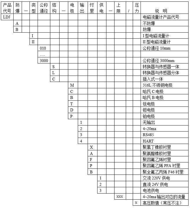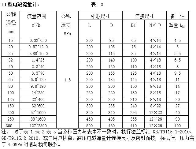 II型電磁流量計(jì)口徑DN(mm): 10、15、20、25、32、40、50、65、80、