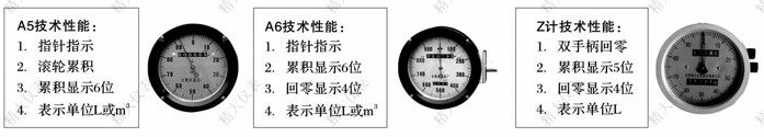 A6 | 回零計數(shù)器 | 大字輪顯示累積流量,指針和小字輪可通過旋轉(zhuǎn)回零手柄使指針和字輪回零 | |