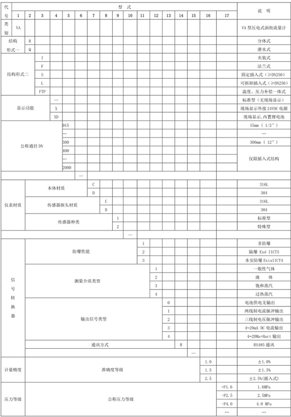 ▮渦街流量計產(chǎn)品型號標(biāo)記