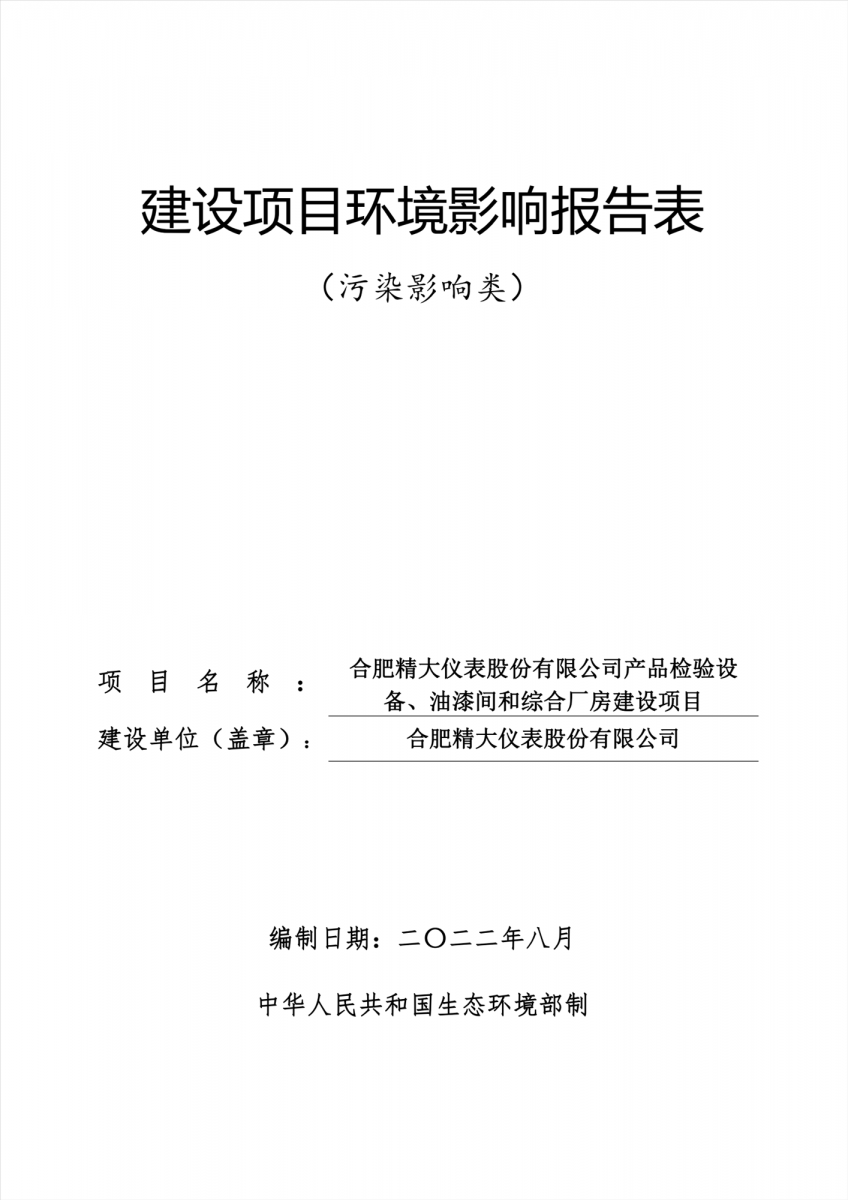 合肥精大儀表股份有限公司產(chǎn)品檢驗(yàn)設(shè)備、油漆間和綜合廠房建設(shè)項(xiàng)目環(huán)境影響評價(jià)報(bào)告表公示