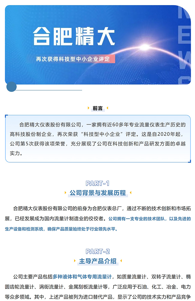 合肥精大儀表股份有限公司再次獲得科技型中小企業(yè)評(píng)定,創(chuàng)新引領(lǐng)未來(lái)