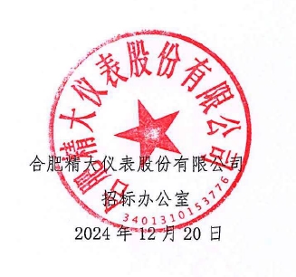 三、投標(biāo)人應(yīng)于2024 年12 月30 日前,將標(biāo)書送達(dá)合肥精大儀表股份有限公司(北區(qū)),