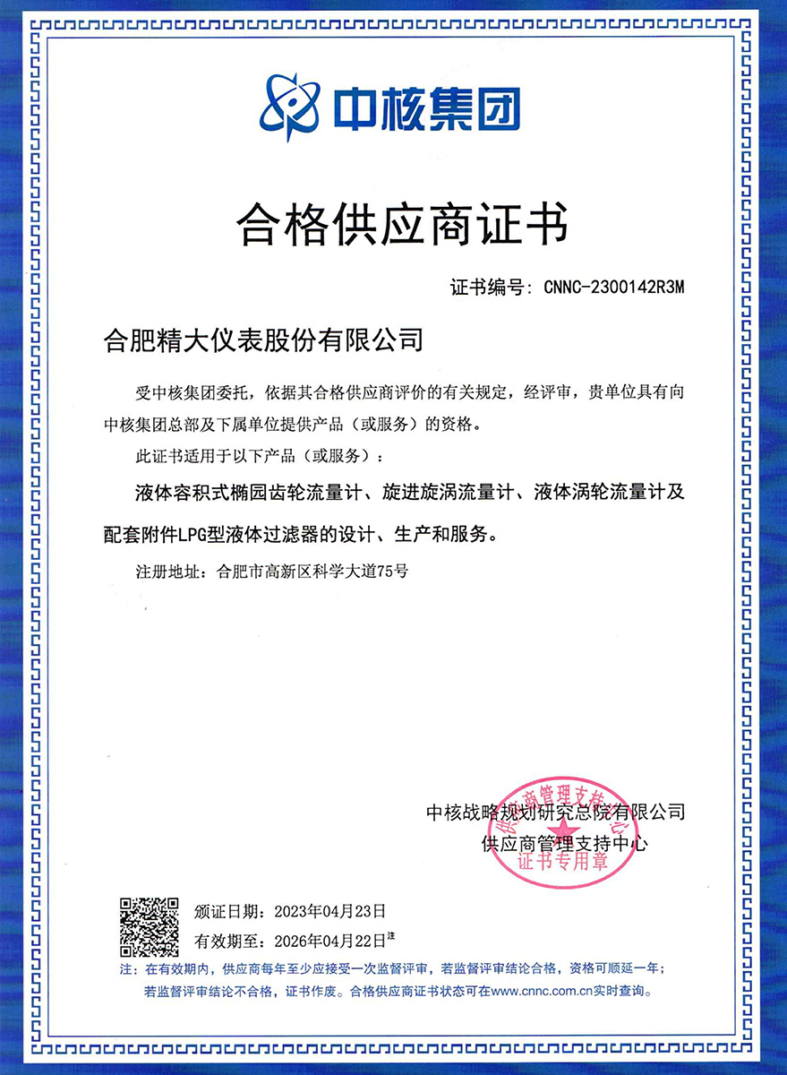 中核合格供應(yīng)商證書