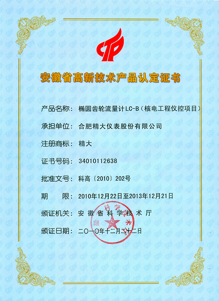 省高新技術(shù)產(chǎn)品認(rèn)定證書(shū)(LC-B核電)