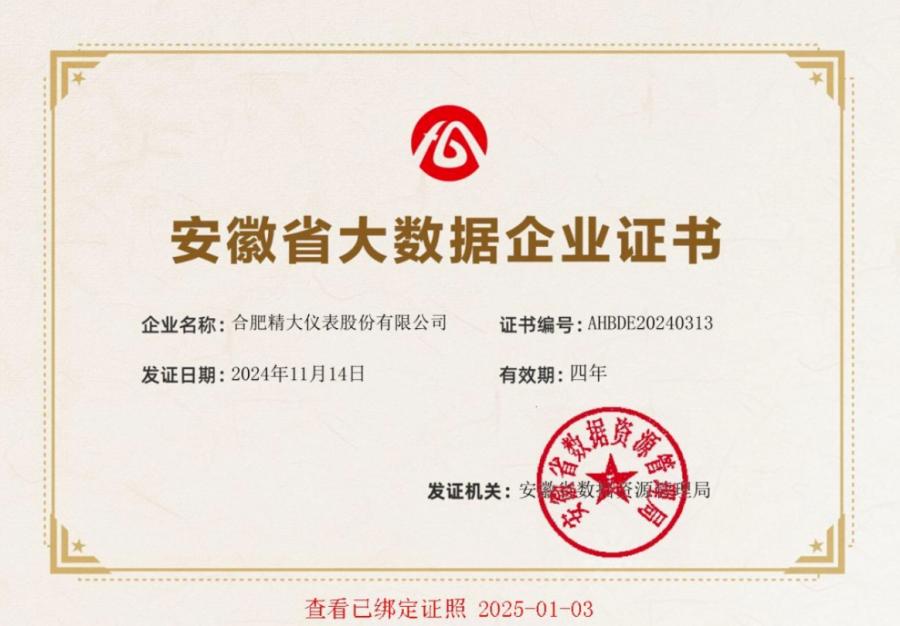 在這個信息爆炸的時代,每一次技術(shù)的革新都如同破曉的曙光,照亮前行的道路。今天,我們自豪地宣布:繼2024年榮獲合肥市大數(shù)據(jù)企業(yè)認定之后,合肥精大儀表股份有限公司再次憑借其在智能制造領(lǐng)域的卓越表現(xiàn),成功斬獲安徽省大數(shù)據(jù)企業(yè)認定,連續(xù)兩年在科技創(chuàng)新的道路上留下堅實足跡!