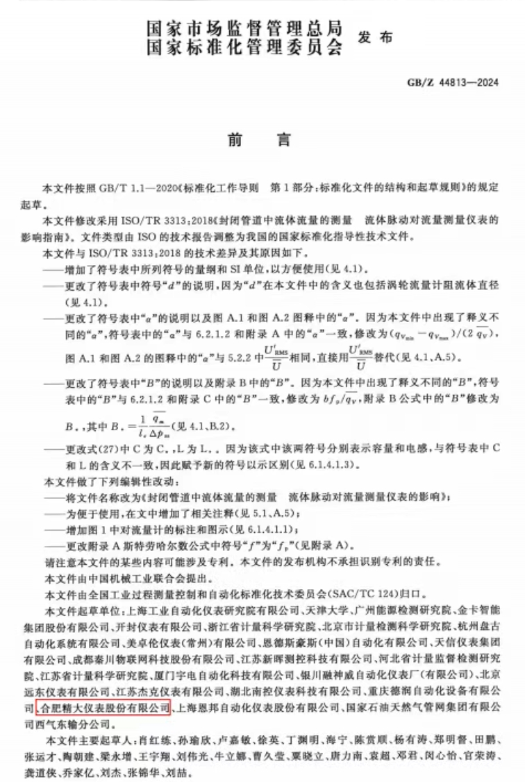 GB/Z 44813-2024發(fā)布,合肥精大儀表助力精準(zhǔn)流量測(cè)量新時(shí)代