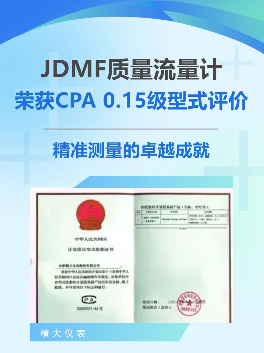JDMF質(zhì)量流量計榮獲CPA 0.15級型式評價:精準(zhǔn)測量的卓越成就